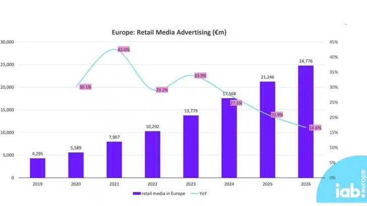 • 25 Milliards d’euros : c’est l’estimation de la taille du marché à 2026 du Retail média en Europe