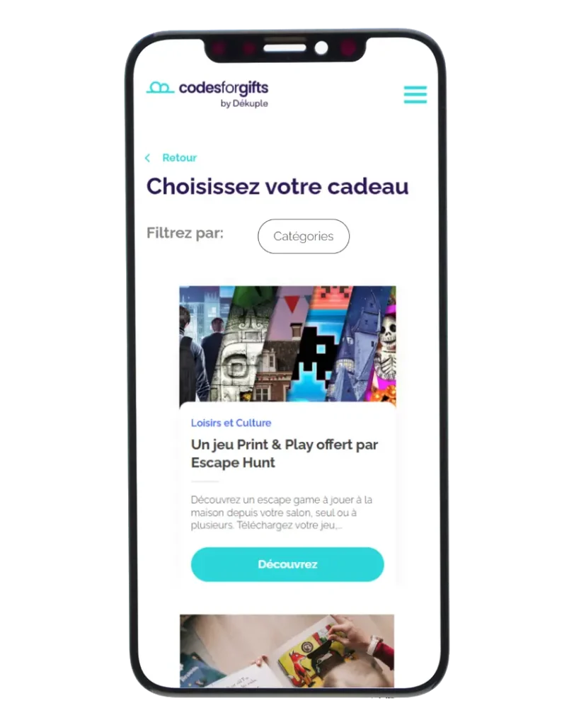 Le secret d'une opération réussie réside dans la pertinence de l'offre. Codes for Gifts simplifie ce choix en proposant un large catalogue de marques premium et d'enseignes nationales. Nous vous accompagnons pour sélectionner les univers de cadeaux les plus affinitaires avec votre cible (ex: bien-être pour une cible féminine, high-tech pour une cible jeune).