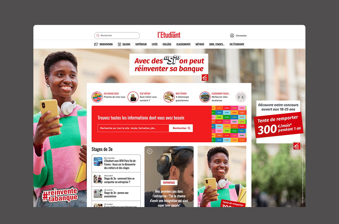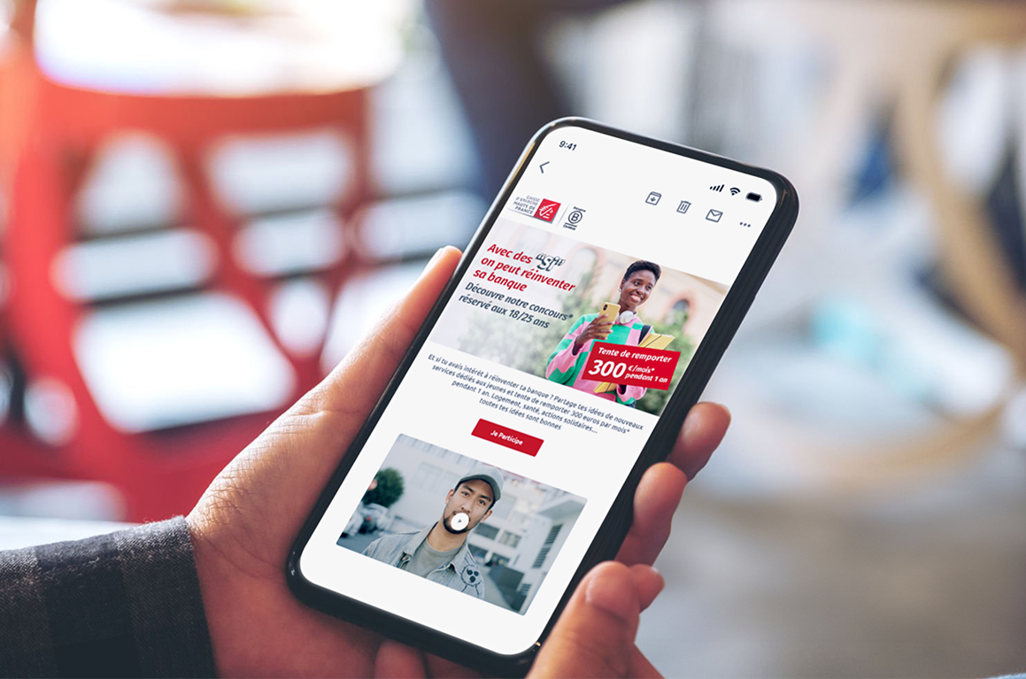 L’opération “Réinvente ta Banque” propose un appel à idées ouvert, invitant les jeunes actifs à imaginer les services bancaires de demain. Ce format inversé, où la banque écoute au lieu de parler, permet de capter l’attention avec un rôle actif donné à la cible.