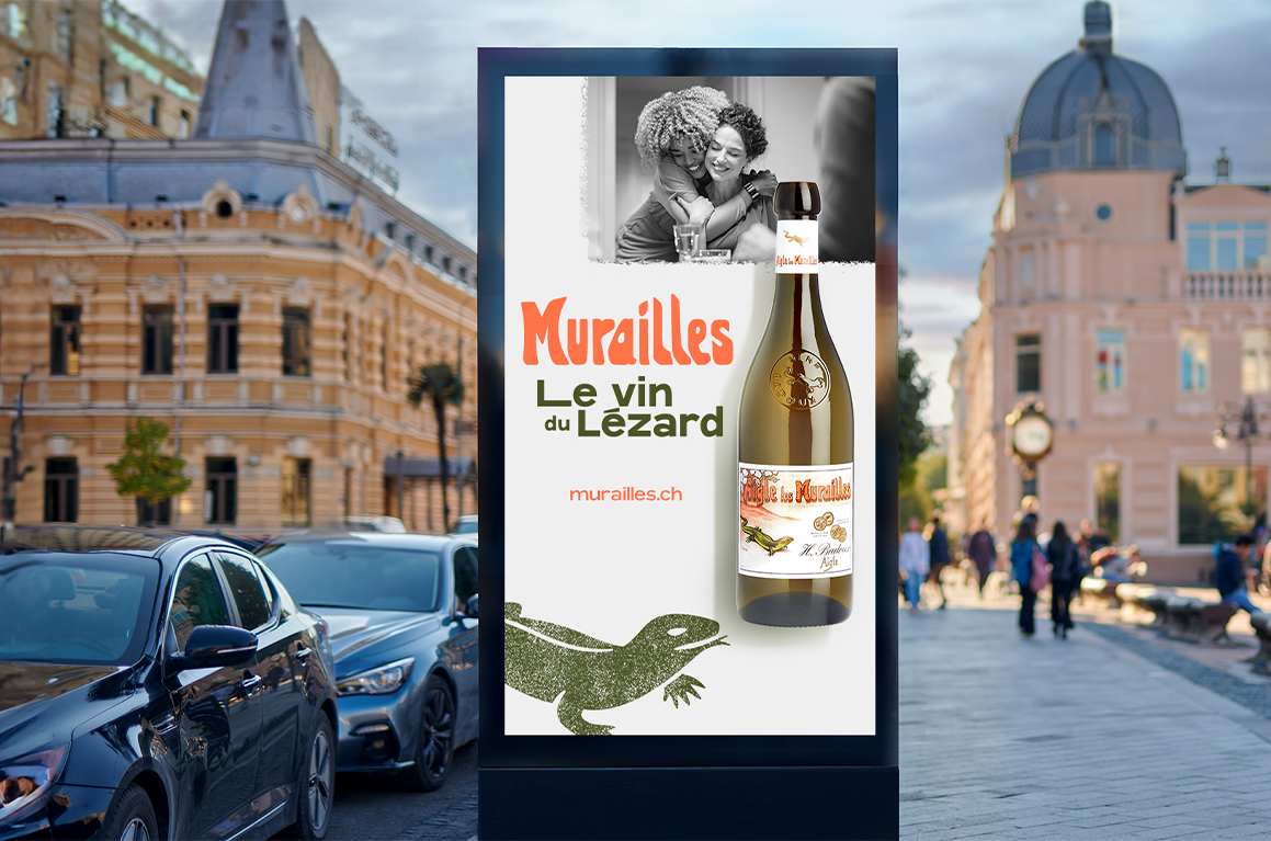 Vin Murailles choisit une approche lifestyle et visuelle forte pour émerger dans un secteur traditionnel, avec une campagne nationale diffusée en DOOH et presse, centrée sur son symbole fédérateur : le lézard.